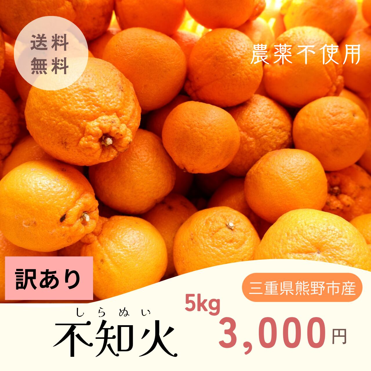 農薬不使用、訳あり不知火5kg 3,500円(送料込み)